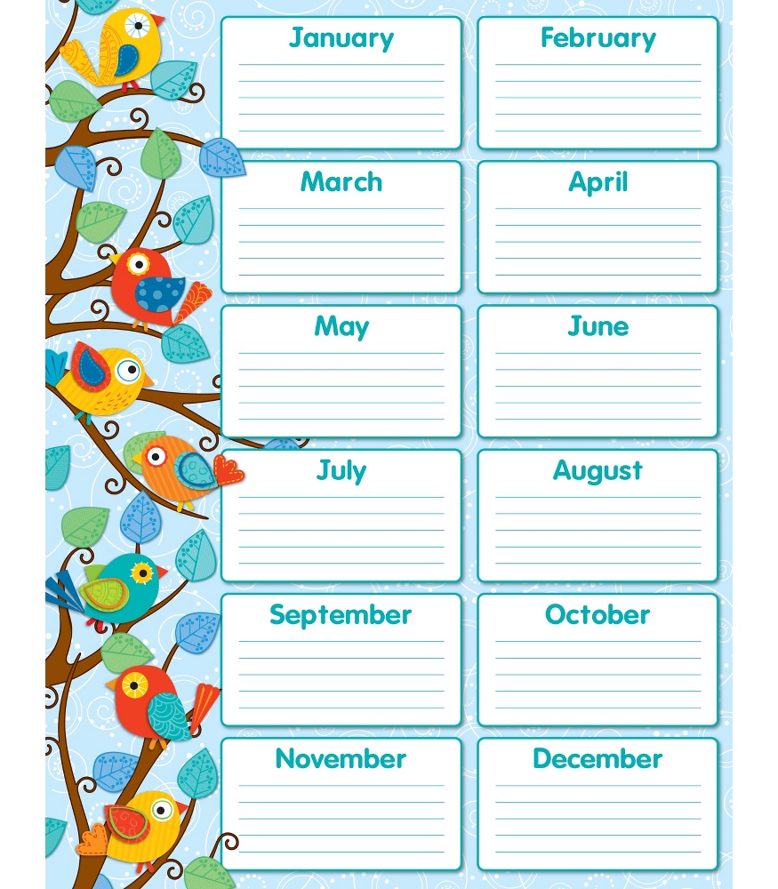 Boho Birds Birthday Chart