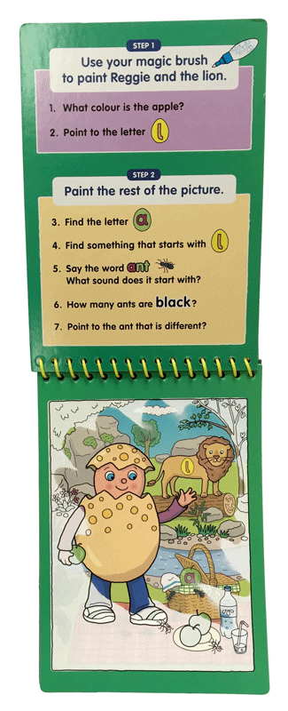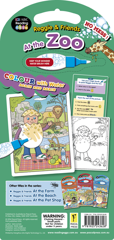 Children will be delighted with the colourful images they uncover as they apply water. Reggie visits the zoo, beach, pet shop and farm and each picture panel includes questions for parents or carers to ask, in order to maximise the fun.
