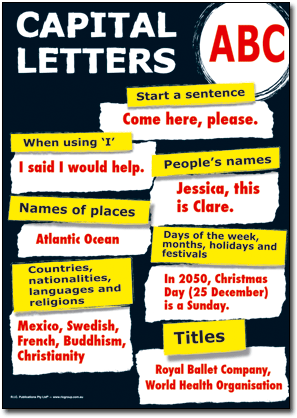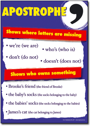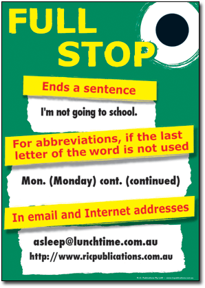 Colourful posters, with bold, easy-to-read text, aimed at introducing aspects of punctuation to students.