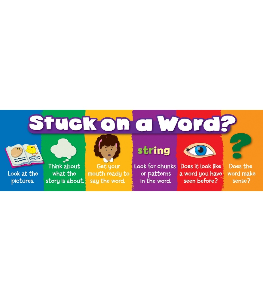 This colorful, reading-themed bulletin board set includes a chart (17” x 24”) on reading strategies, 7 strategy pieces, and a resource guide