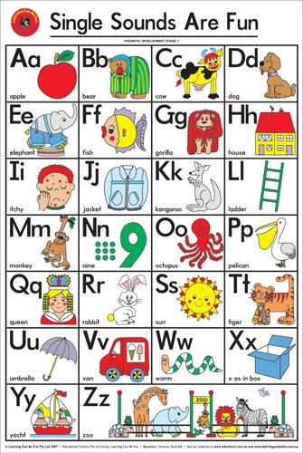 26 reading cards showing the correct phonetic representations for the 26 letters of the alphabet